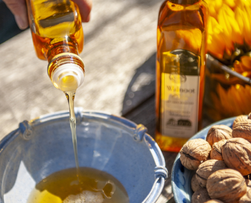 100% pure walnootolie, geperst op ambachtelijke wijze in onze Italiaanse oliepers uit de jaren 60. Laat je gepelde walnoten persen tot heerlijke walnootolie van eigen oogst. Onze producten zijn te koop in onze winkel in Zoelen en in onze webshop. Ook voor walnootrapers en notenkrakers ben je hier aan het juiste adres. Je kunt je hier goed over laten informeren, en het ook zelf uitproberen.