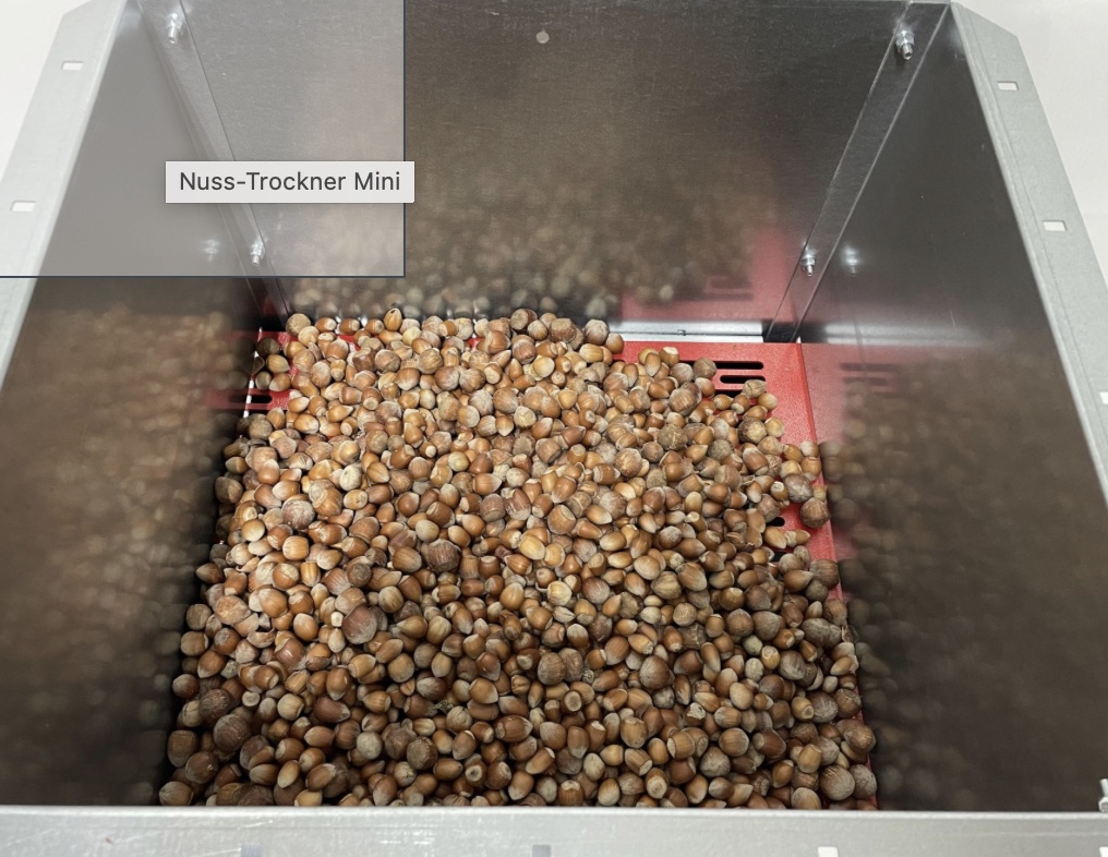 De walnoten droger kan tot 40 liter noten drogen. Een regelbare luchtverhitter genereert een warme, gelijkmatige luchtstroom (36°). De luchtverhitter is rechtstreeks aangesloten op de droogruimte. Een klep zorgt ervoor dat het vocht van de noten gedurende het hele proces wordt gecontroleerd. Hierdoor kan met deze droger een zeer goed droogresultaat worden behaald.